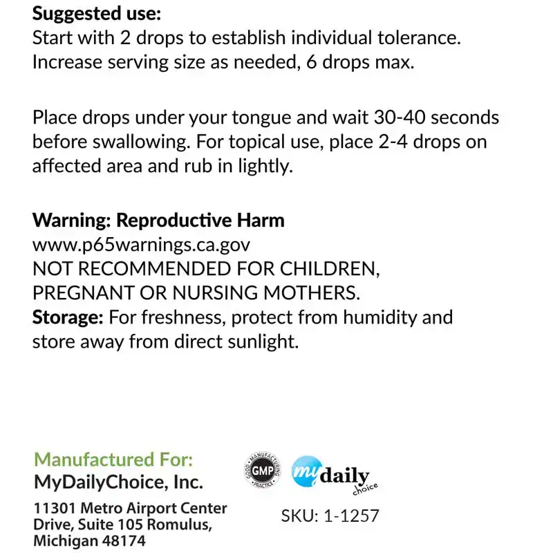 - Increase gradually as needed (up to 6 drops daily)