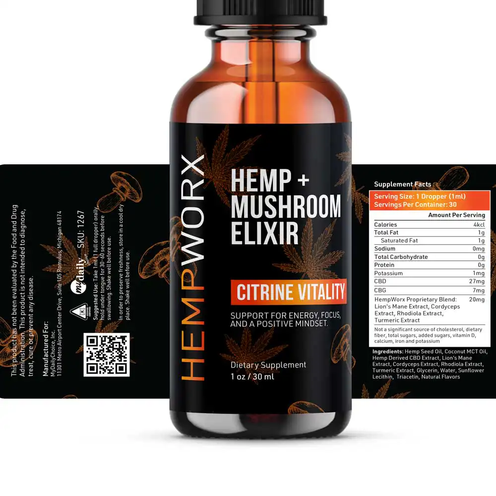 Hempworx Mushroom Elixir Citrine Vitality goes beyond a basic CBD product by combining multiple functional ingredients into one streamlined formula.